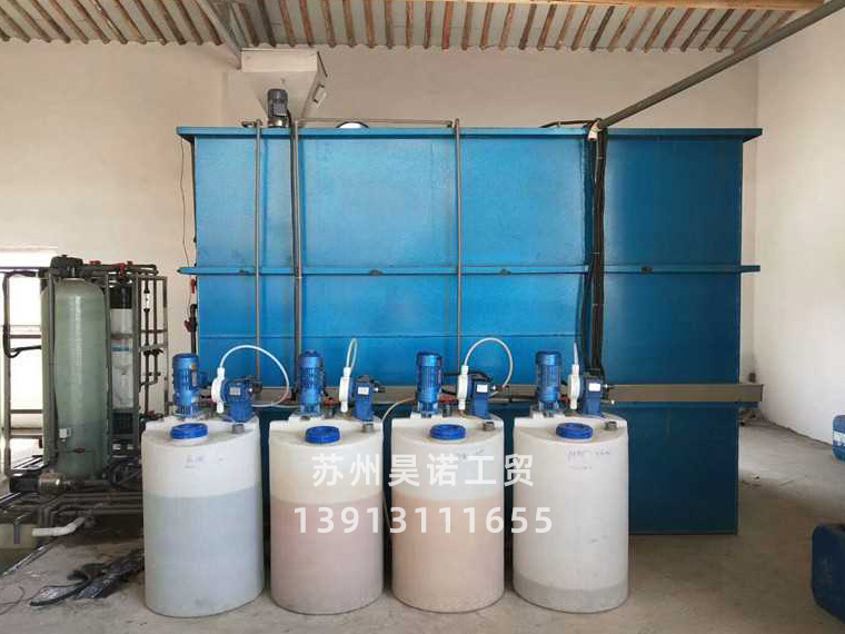 根據(jù)系統(tǒng)現(xiàn)狀和藥劑特性,可將滅藻劑直接加入集水池中。阻垢緩蝕劑的加藥方式為:在循環(huán)冷卻水集水池旁配置一配藥槽,配藥槽上部有補(bǔ)水管,下部有排污口,藥劑加入配藥槽中用補(bǔ)充水稀釋后,用計量泵連續(xù)均勻地逐漸加入集水池中。加藥位置